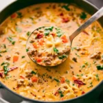 A comforting bowl of Italian Sausage Pasta Soup, rich and savory, perfect for chilly evenings.